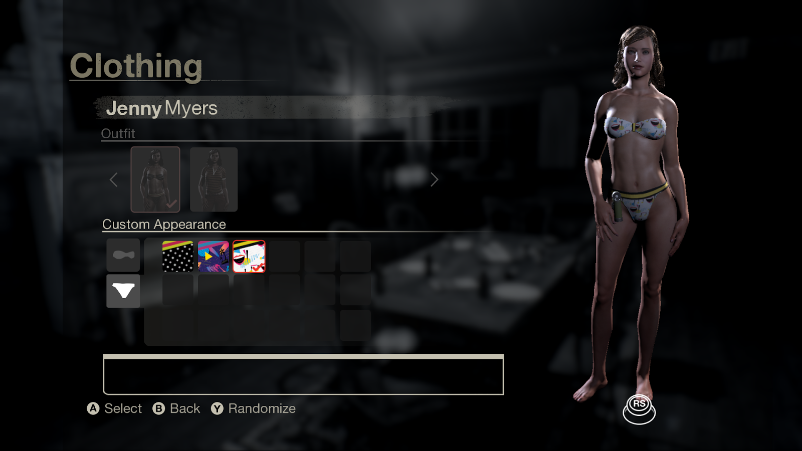 - After selecting your outfit, your swatch menu will now appear. Choose your colors, then select Back to move on to the next piece of clothing. Your selections automatically save so simply back out when you are finished.